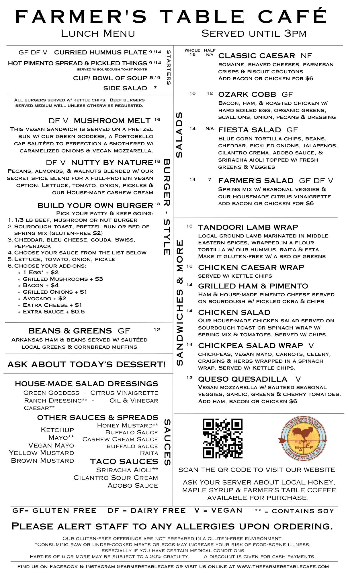Welcome to The Farmer’s Table, where we bring homegrown flavor and a menu full of memories straight to your plate. Sit back, relax, and experience elevated comfort food rooted in local farming and culture. Discover our big crazy family, fall in love with this old house, and experience Northwest Arkansas homegrown flavor like never before.