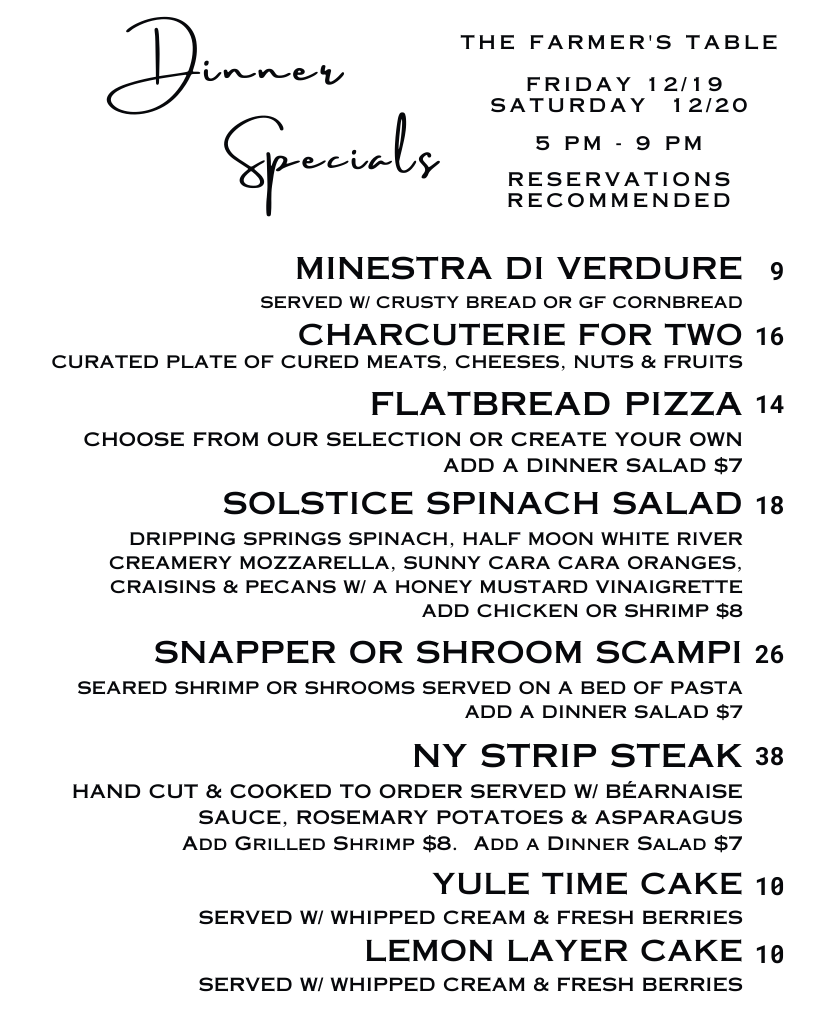 closed for dinner saturday 12/ 5 & 6 for a private event