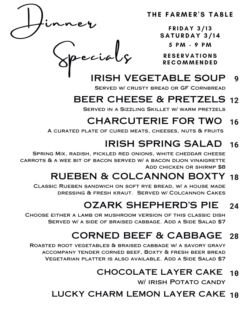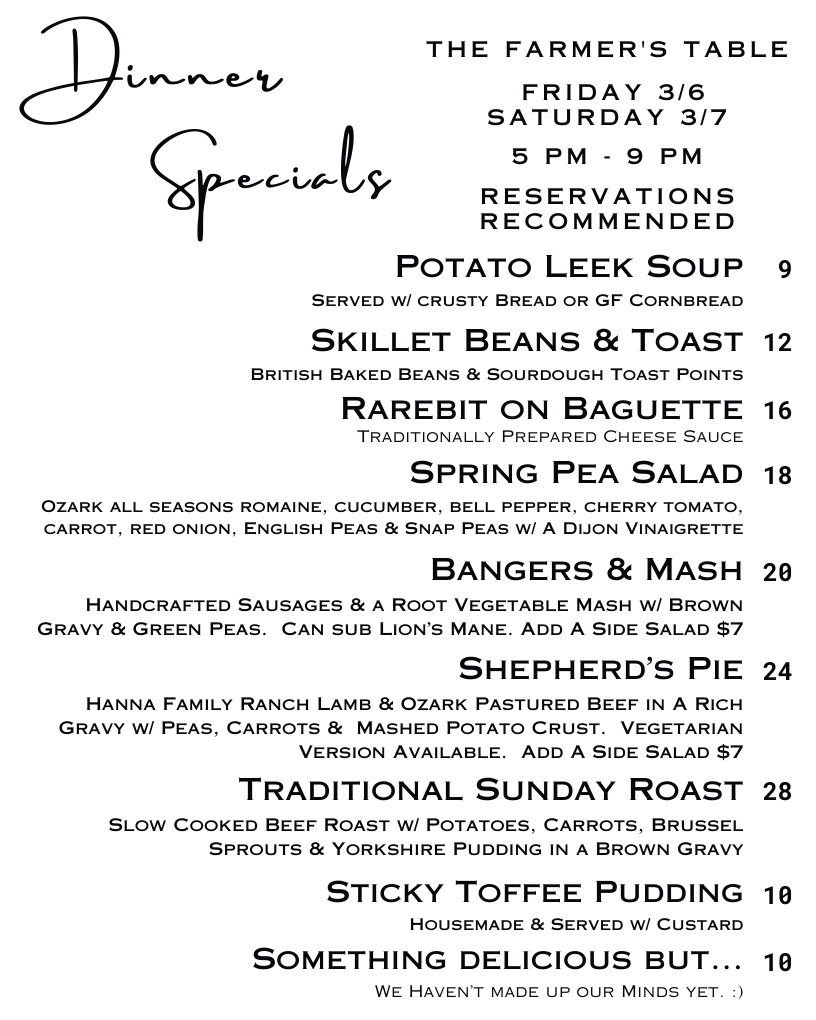 Welcome to The Farmer’s Table, where we bring homegrown flavor and a menu full of memories straight to your plate. Sit back, relax, and experience elevated comfort food rooted in local farming and culture. Discover our big crazy family, fall in love with this old house, and experience Northwest Arkansas local foods like never before.
